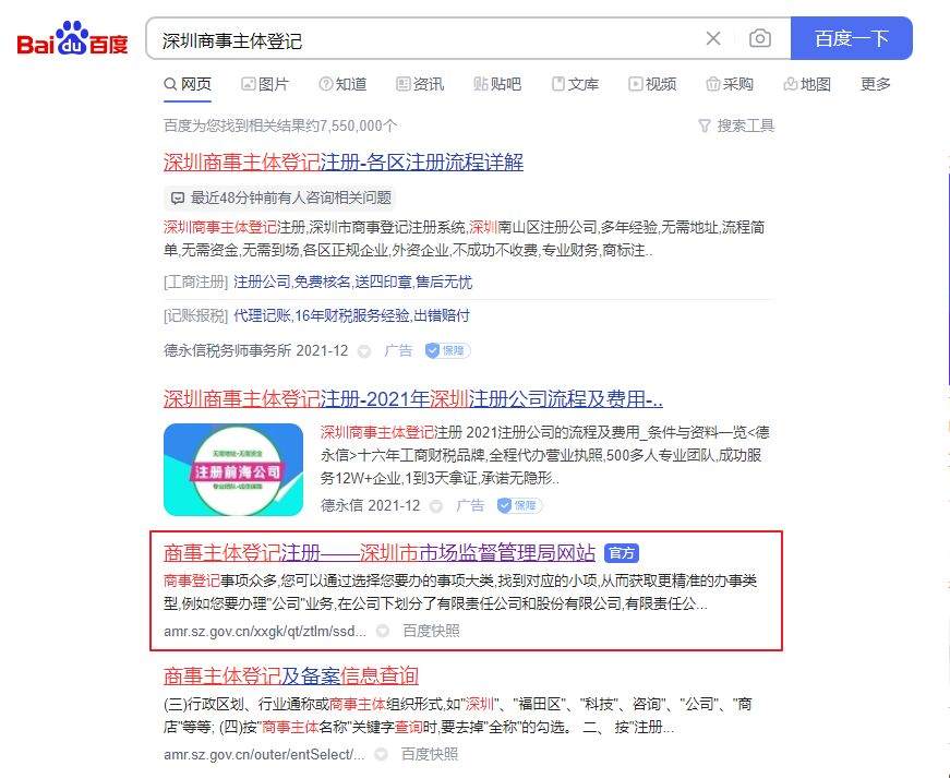 首先我们可以通过搜索深圳商事主体登记,点击进入(一定要认准官方标记)