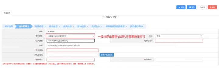 法定代表人按照实际内容填写即可,带*号表示必须填写的内容。