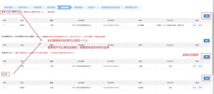 填写董事、监事信息和联系人信息