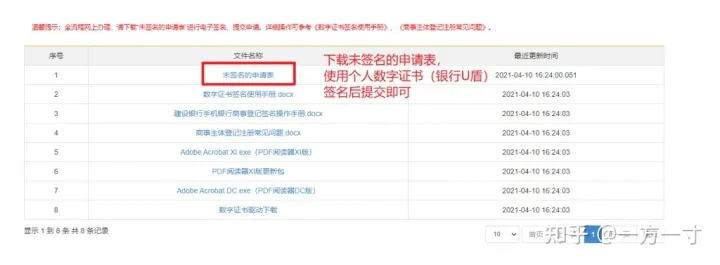 最后下载未签名的申请表,使用个人数字证书(银行U盾)或者CA证书签名后提交即可。