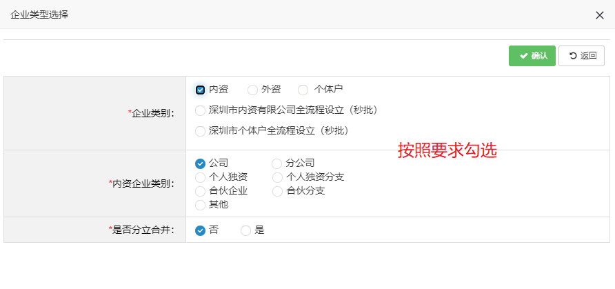 根据自身要注册的类型勾选后选择确认